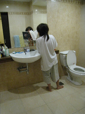 Anyway we ended the night early. Princess and I had to drive back to Penang together tomorrow and she was staying over at my place. Unprepared as usual she must’ve forgotten to bring her pajamas or something so she ended up running through my closet (without my permission) and grabbing herself a t-shirt and shorts of mine.