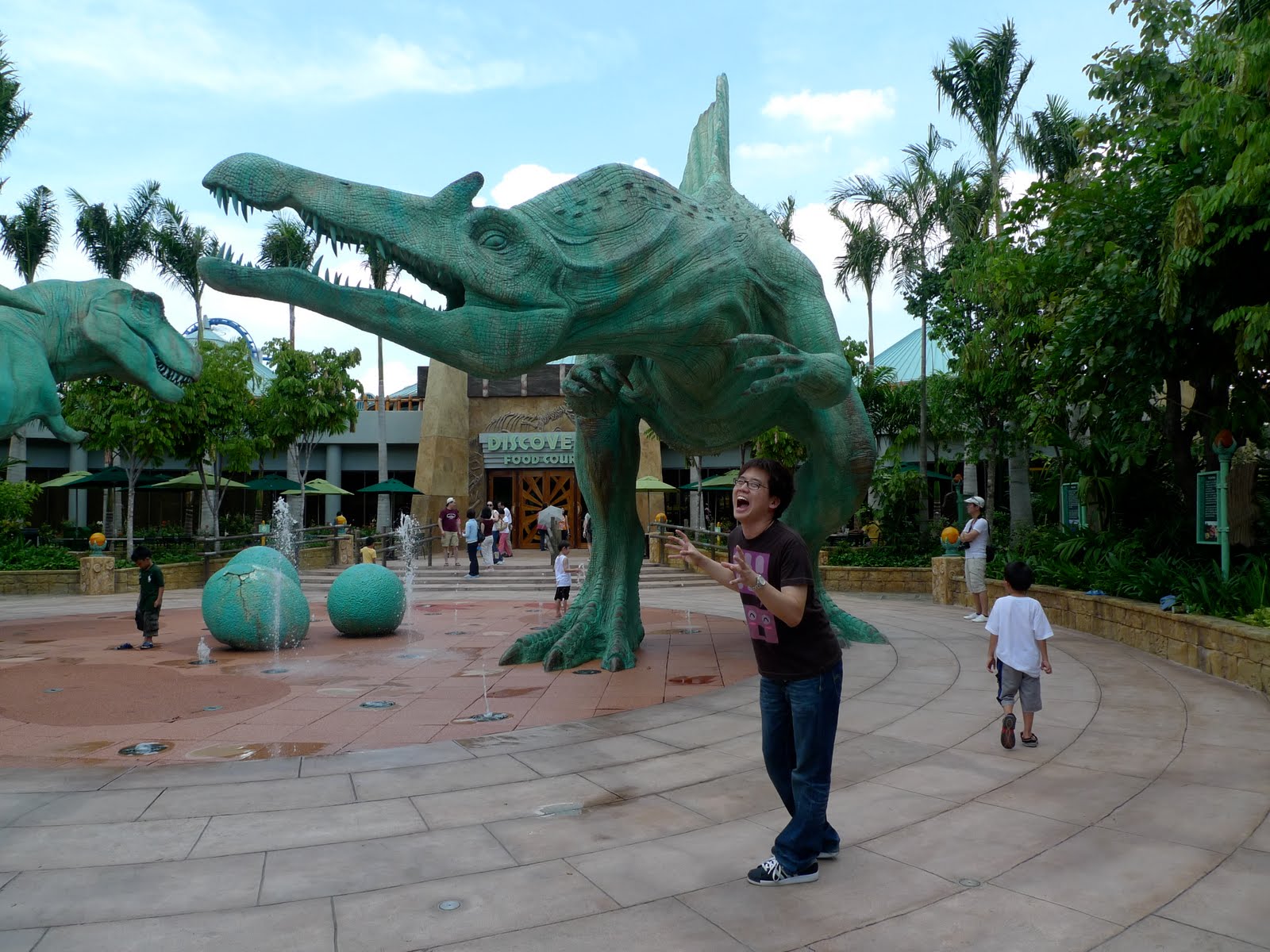 Princess and I decided to each do some pose with the big dinosaur we saw.